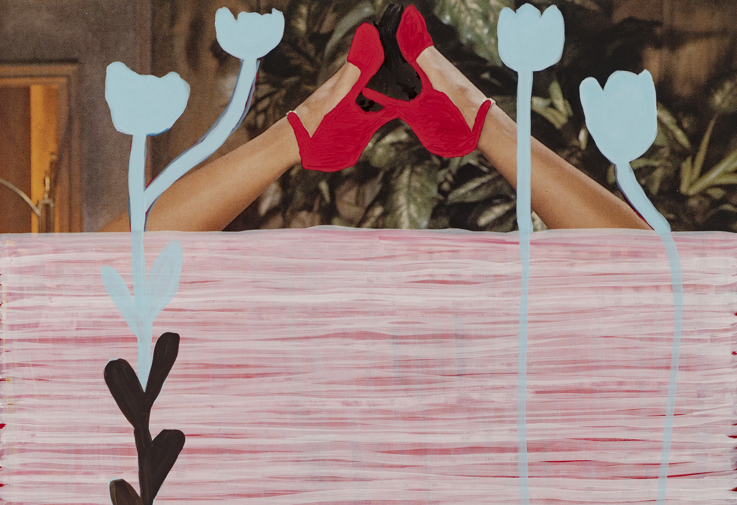 Red See, 2021 (Detail). Acrylic over photograph printed on canvas. 55 3/4 x 40 in.