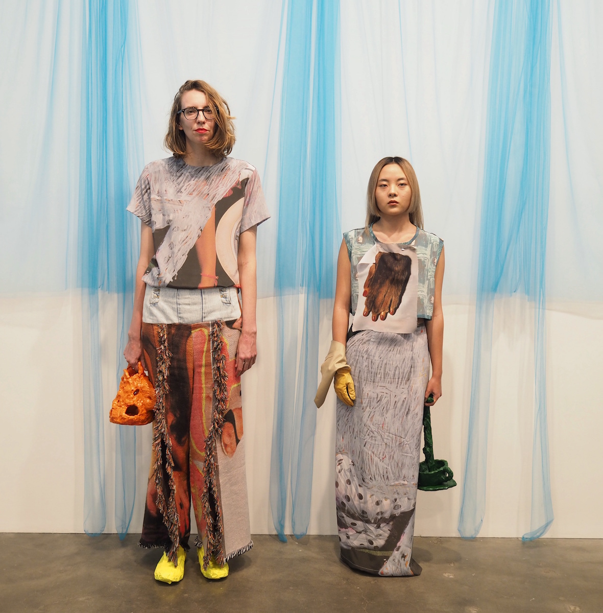CarWash Collective Fashion Show, 2016. Susan Inglett Gallery, New York City. Models: Rachel Lifter (L), Grace Choi (R)